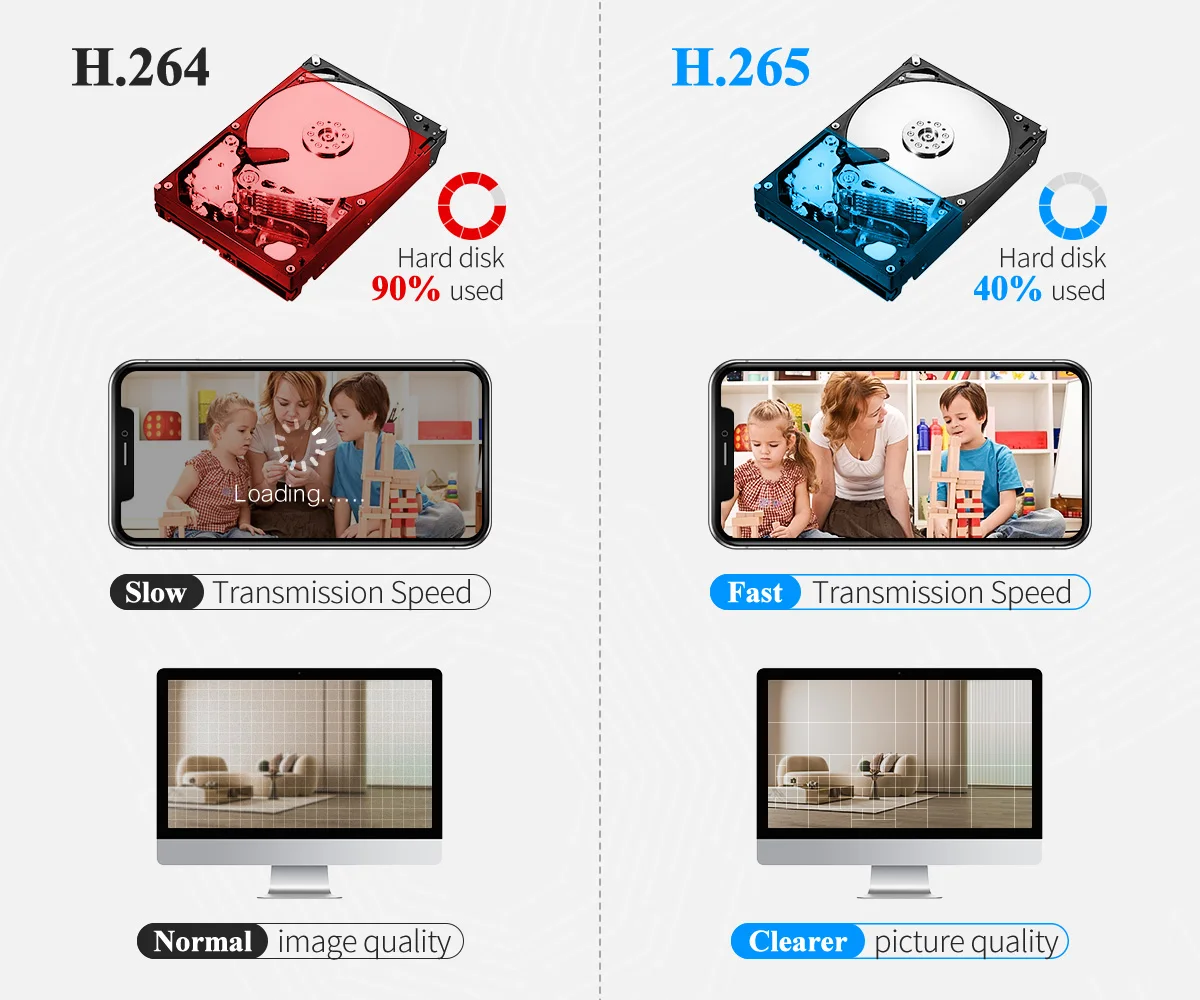 H.265 More Clear , HD resolution offer you best image quality in a lower bit rate.