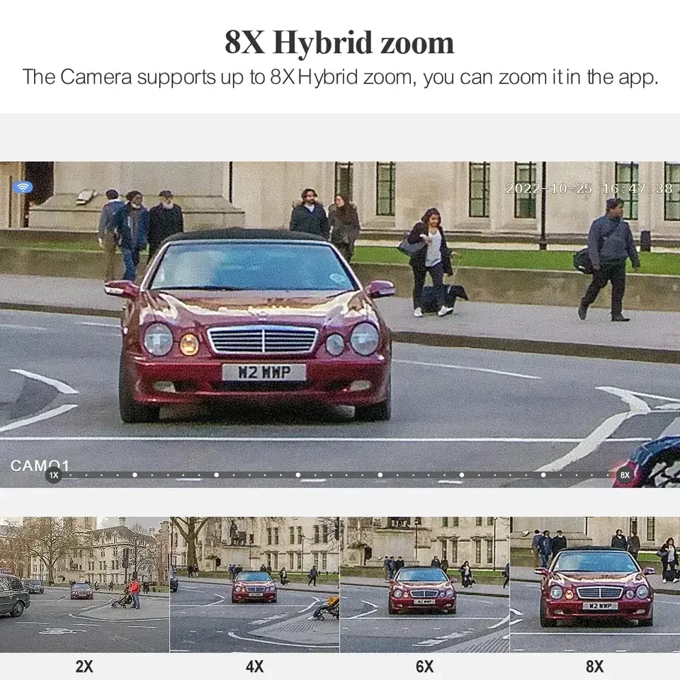 The Camera supports up to 8X Hybrid zoom, you can zoom it in the app.